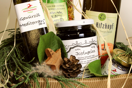 Wir arbeiten eng mit regionalen Erzeugern und Unternehmen zusammen. Viele unserer Geschenke werden mit unterschiedlichen Leckereien aus unserer Region bestückt.